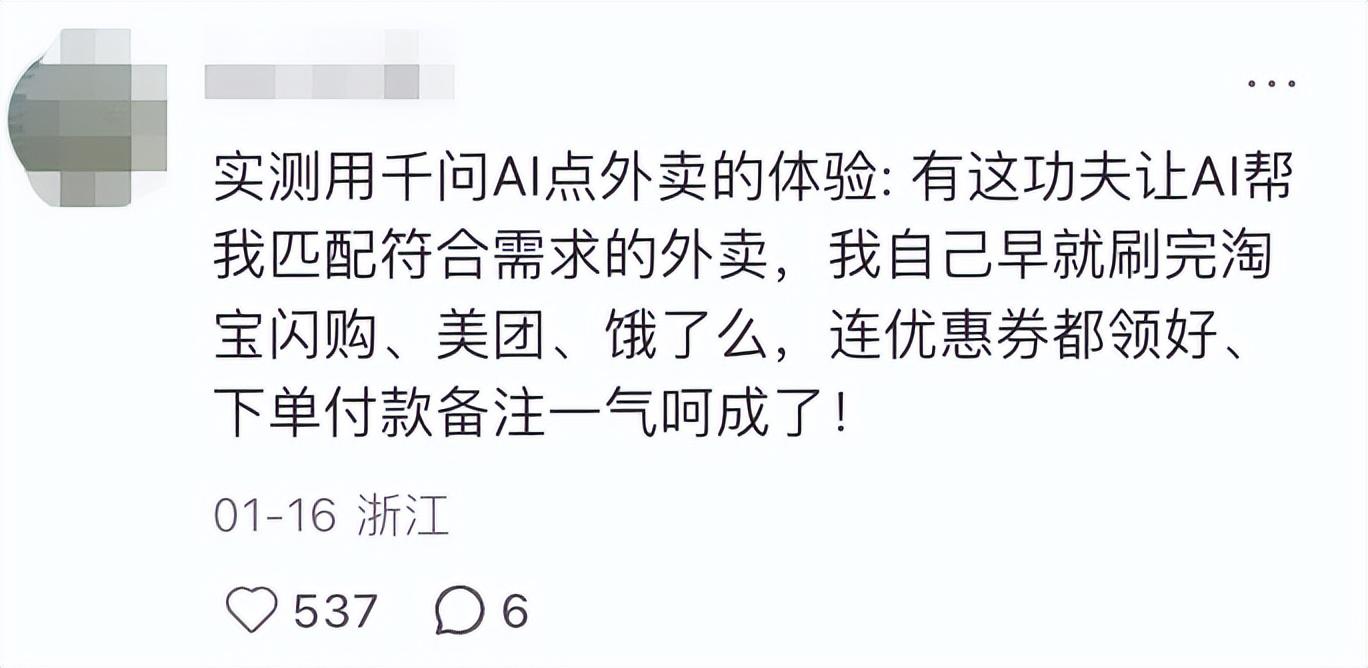 但火爆背後也暴露出明顯的短板:活動峯值下用戶體驗尚不穩定、操作鏈路繁瑣,部分用戶認爲AI輔助下單效率不如手動。