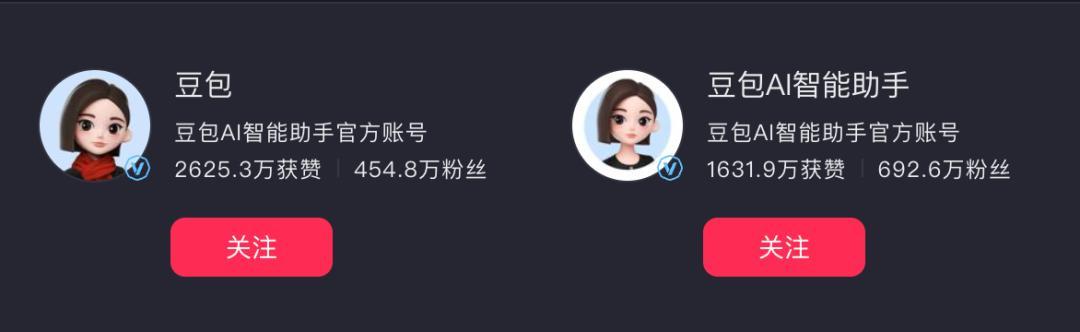 豆包在抖音構建了紮實的 UGC 陣地。當前豆包在抖音有兩個賬號“豆包”“豆包AI智能助手”相加粉絲量超過了一千萬。在AI領域的賬號中,鮮少能見到豆包這一體量,這意味着粉絲基礎十分紮實。
