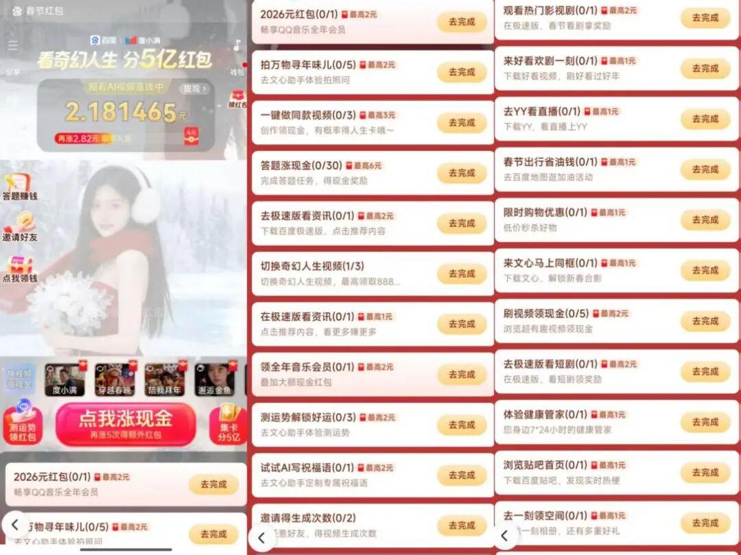 不過,百度文心紅包玩法雖未強依賴社交裂變、輿論更溫和,但也被用戶吐槽任務繁瑣、整體收益不高。