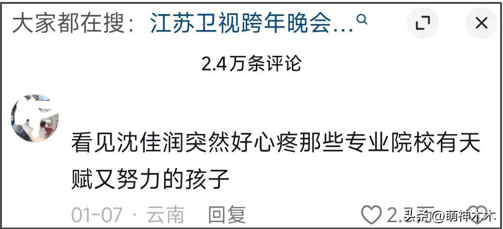 從網友們的批評聲中不難看出,大家最在意的點在於沈佳潤沒有足夠的實力,但是卻有着源源不斷的資源。儘管跨年舞臺跑調大翻車,但她的事業卻絲毫沒有受到影響。跑調爭議之後,她不僅和父親小瀋陽合拍了某品牌的新春廣告大片,還資源升級,和成龍一起爲春節檔影片演唱推廣曲。