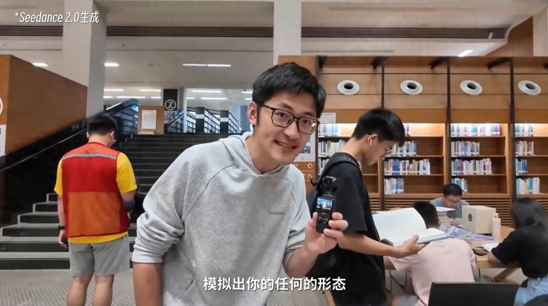 影視颶風Tim 的評測視頻是引爆傳播的關鍵節點,他展示了兩個"細思極恐"的細節:僅上傳一棟建築正面照片,Seedance 2.0就自動還原了建築背面的真實結構;僅憑人臉照片(無參考音頻),模型生成了高度模仿其本人音色和語氣的聲音。