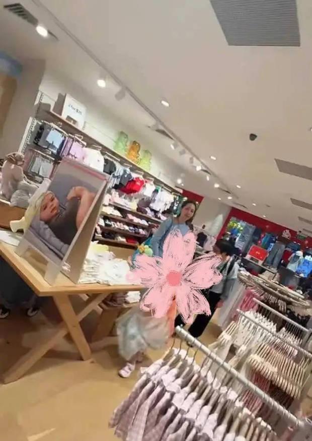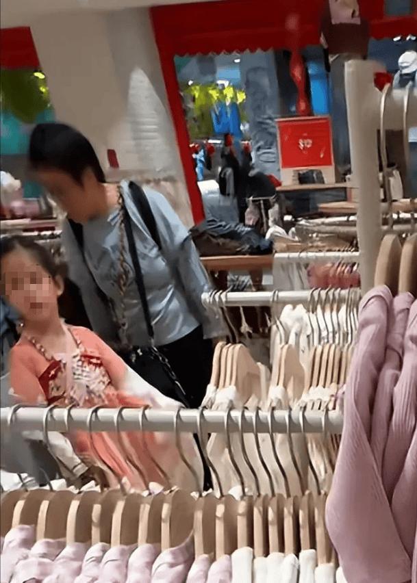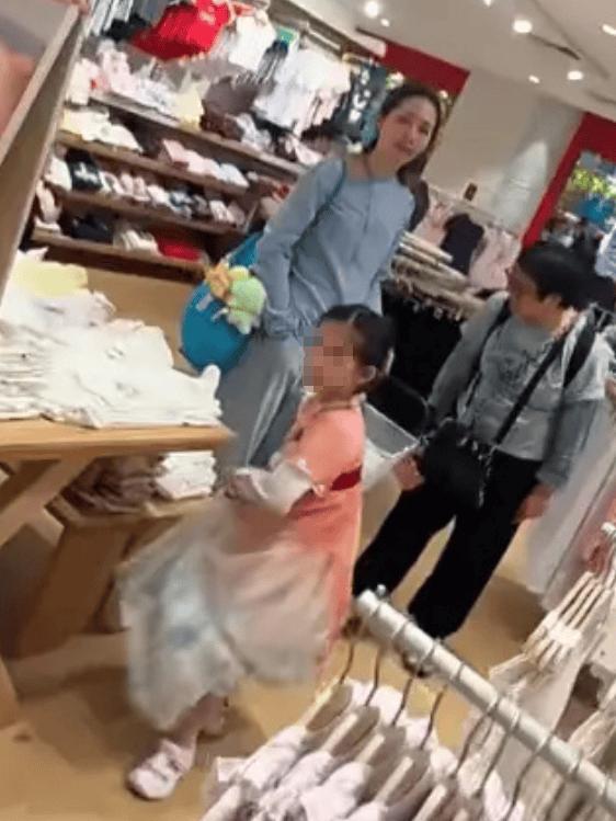 郭碧婷陪女兒選購衣服,女兒乖巧又可愛。