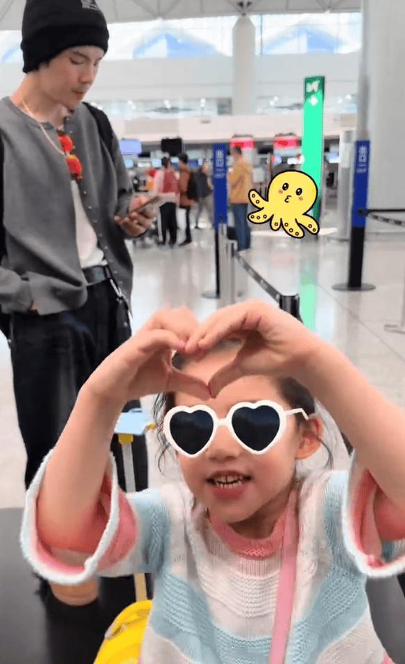 向佐與女兒昔日同框合照,向芷對着鏡頭比心好萌。
