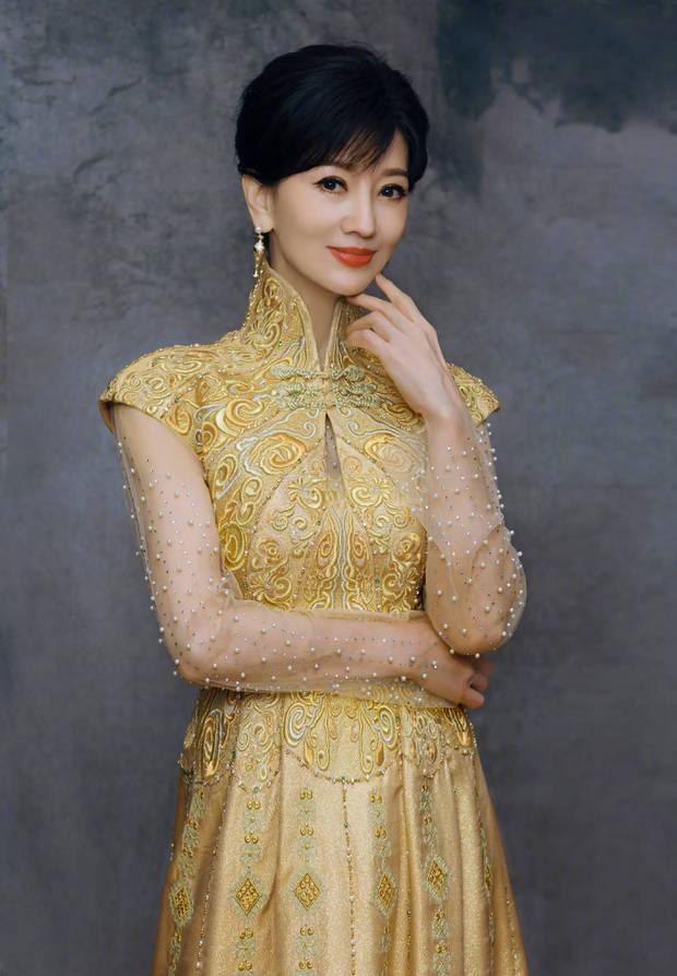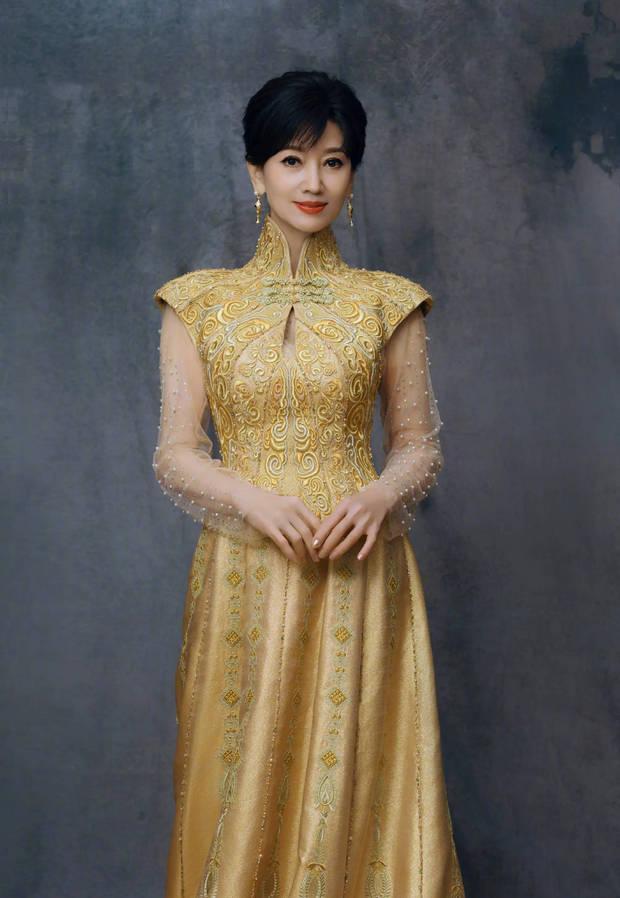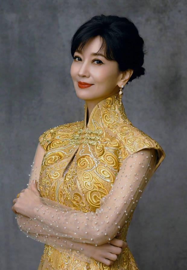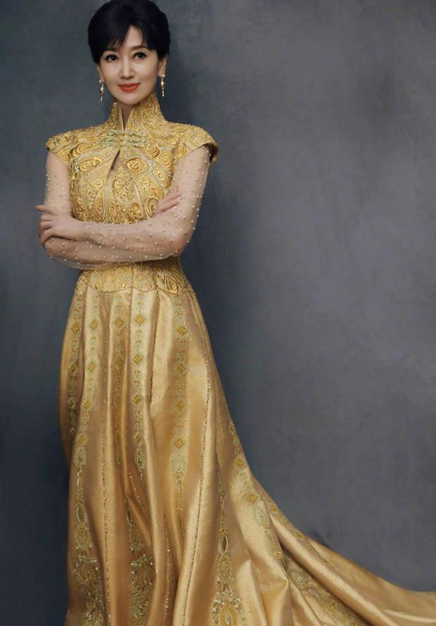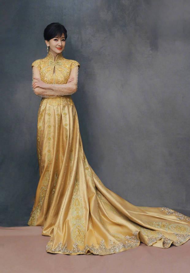 趙雅芝一襲金色長裙優雅迷人。