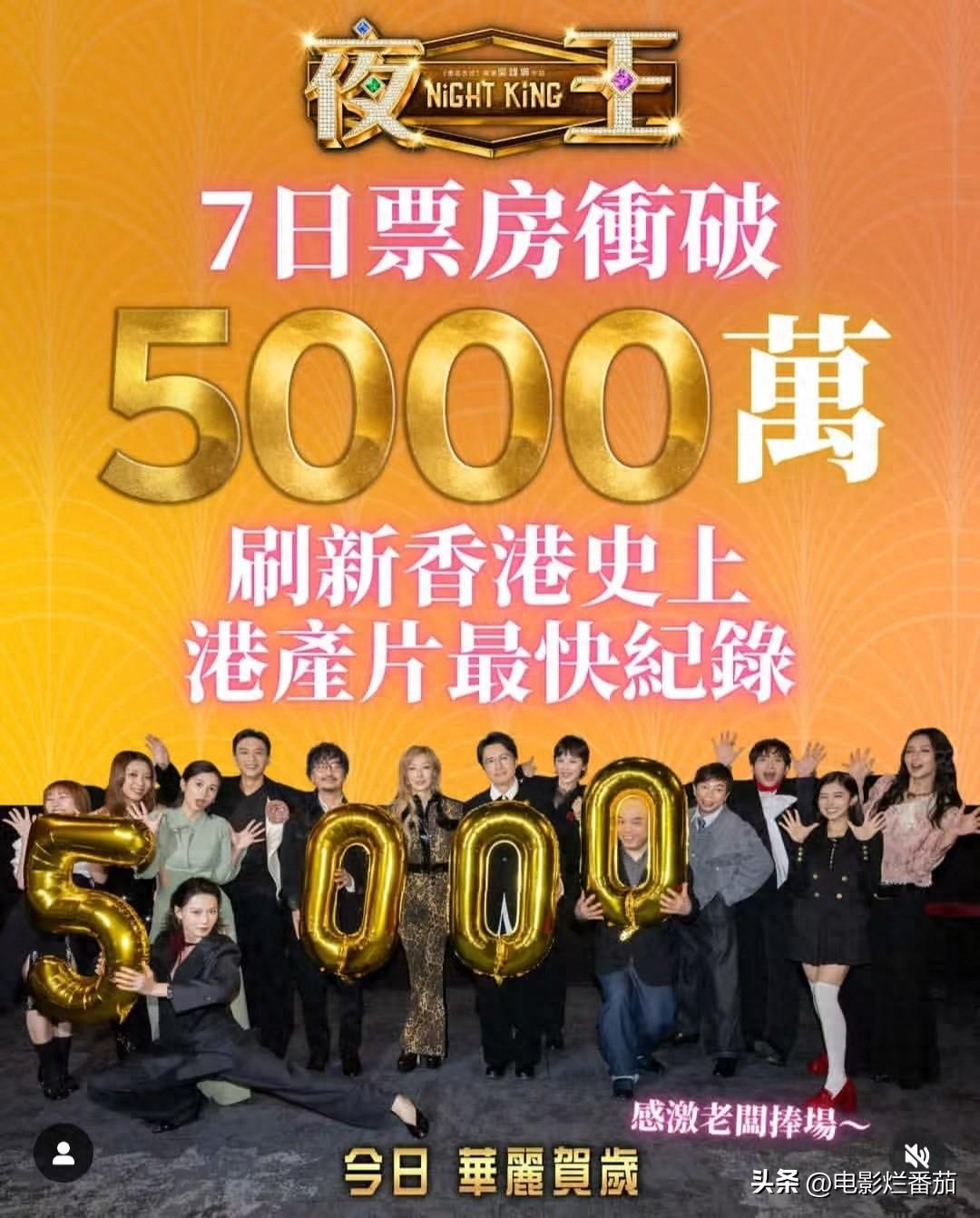 “棟篤笑宗師”黃子華喜劇新片《夜王》定檔2月17日(大年初一)於香港上映,在春節7天時間票房便衝破5000萬港幣,刷新香港史上港產片最快紀錄。