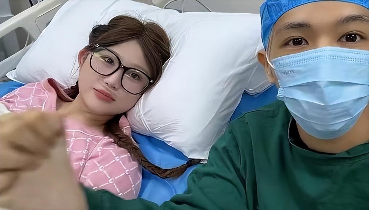 鹿哈妻子兔兔躺在病牀上待產。