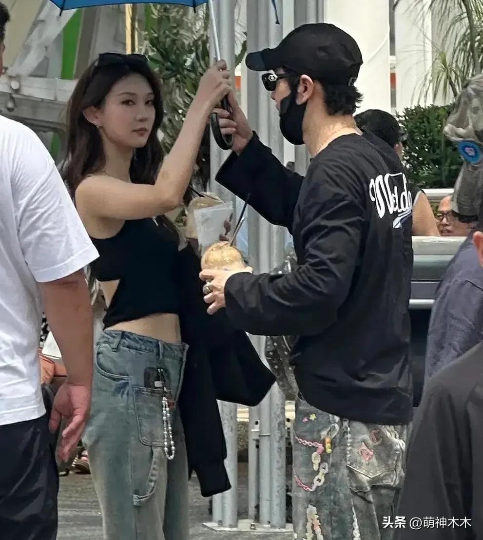 照片中,黃曉明與該美女互動親密,還盡顯紳士風采拿着傘。兩人還疑似穿了情侶裝,都是黑色上衣、牛仔褲、白鞋的搭配,只是款式不太一樣,黃曉明是衛衣搭牛仔闊腿褲,再搭配上黑色帽子和墨鏡,讓48歲的他看起來年輕不少。美女是掛脖露臍背心搭牛仔闊腿褲,秀了一把火辣身材,面貌遠看還是有些網紅臉。