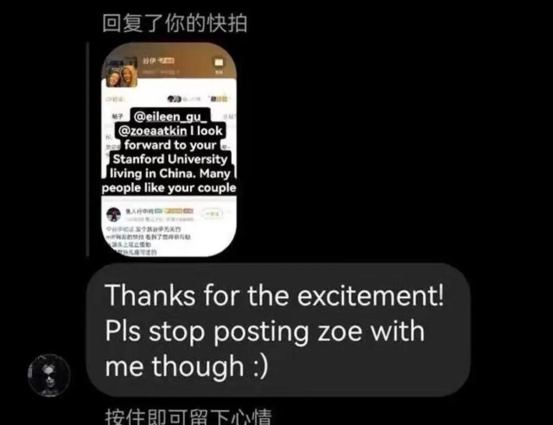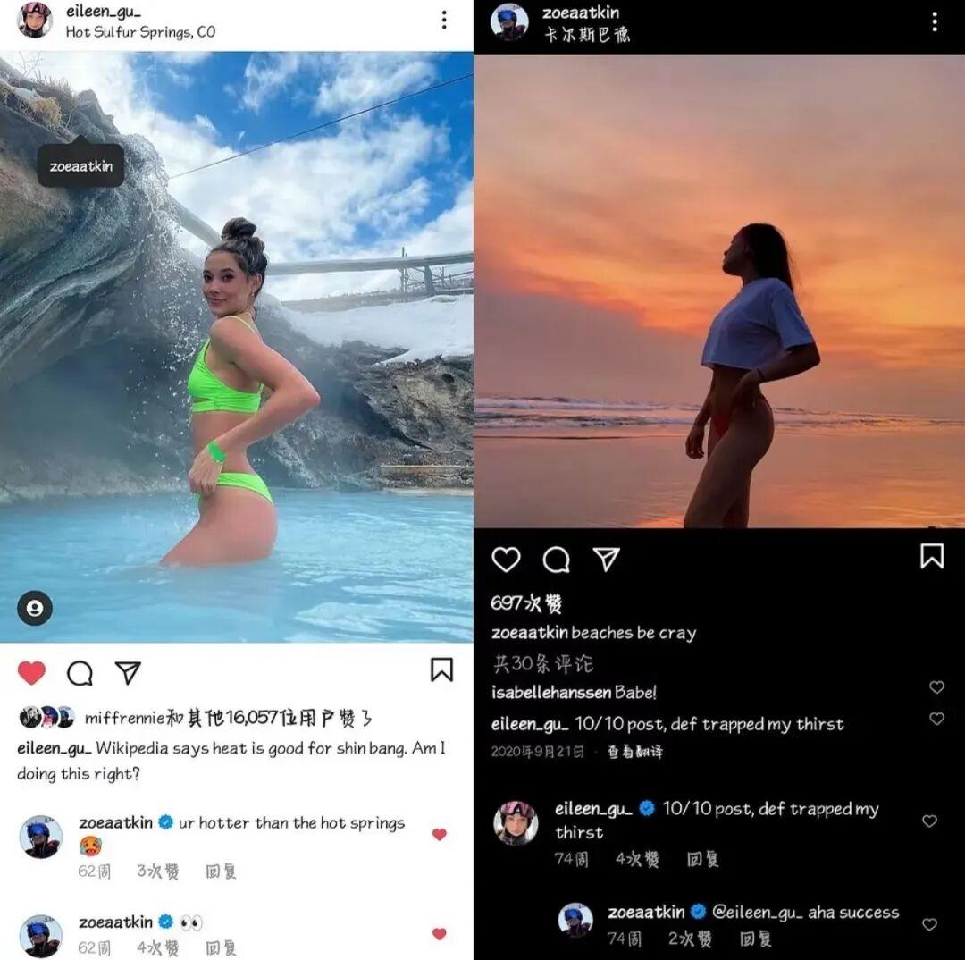 當時佐伊贏了谷愛凌,小谷瘋狂搜對方的名字,從此「結緣」