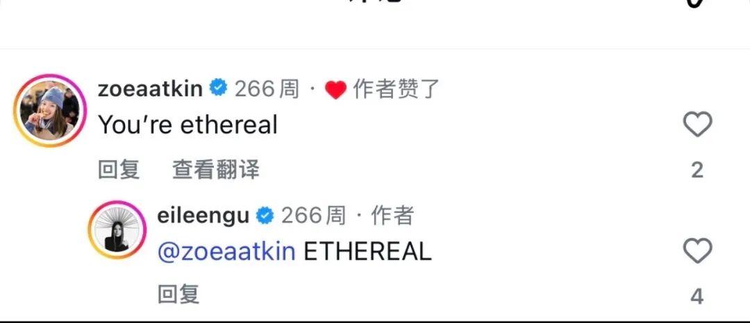 後面在ins上,谷給佐伊評論一句,佐伊給谷點贊