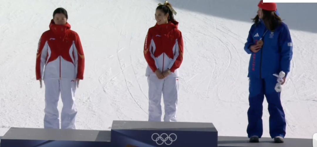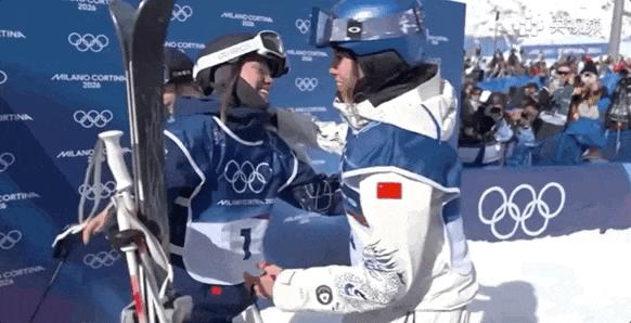 谷愛凌已經滑完了,依舊會在場下等着佐伊完成,