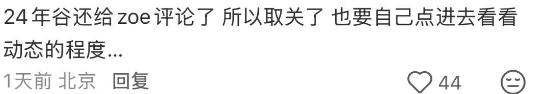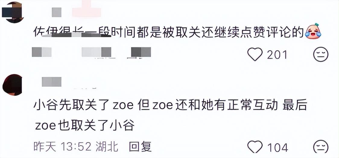 佐伊後面斷斷續續給谷評論,最後也取關了,
