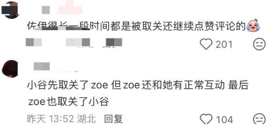佐伊後面斷斷續續給谷評論,最後也取關了,