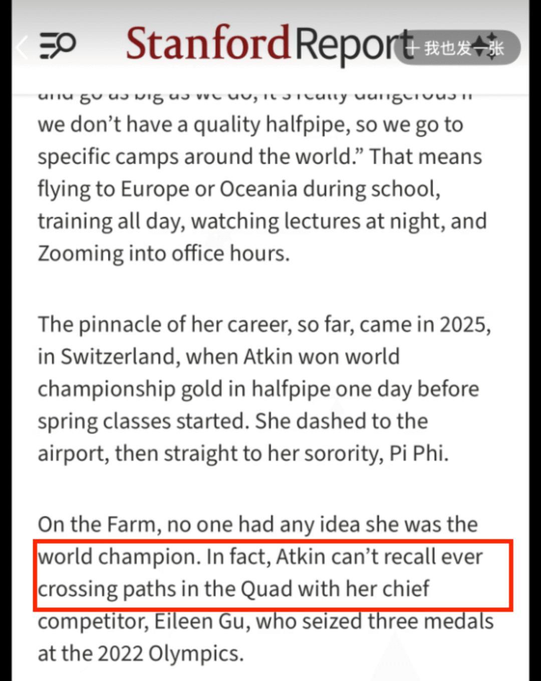 當時佐伊贏了谷愛凌,小谷瘋狂搜對方的名字,從此「結緣」