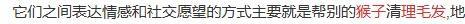 要知道,梳理毛髮被認定爲猴子之間的社交手段,