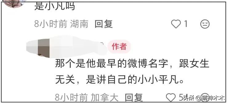 同時,該女網友還曬白宇在她微博下的留言,有一個用戶名是“白宇o小凡”,顯示時間是2012年。於是有網友問她是不是網傳的“前女友小凡”,她稱“小凡”跟女生無關,是白宇最早的微博名字,主要是講自己的小小平凡。