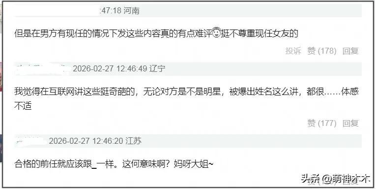 看到白宇前任這麼秀隱私,不少網友覺得不太得體,畢竟白宇有現任女友。對此,該女網友表示自己的言行並不是壞問題,還送了白宇一個熱搜。而且,對於那些指責她炫耀的聲音,她也大方承認就是想要炫耀曾經喫的那麼好,並沒有被白宇的爆紅刺激到。