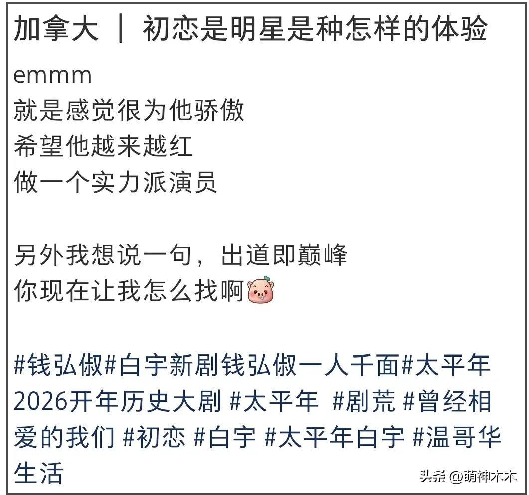 由白宇主演的《太平年》正在熱播,突然一位女網友曬出與白宇的親密合影分享“初戀是明星的體驗”。照片中,兩人臉貼臉,女生下巴還放在白宇肩頭,引發熱議。