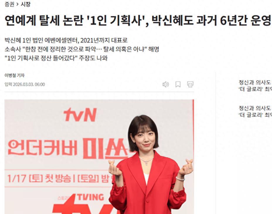 搜狐娛樂訊 近日,樸信惠被韓媒曝光涉嫌通過個人工作室逃稅,韓國媒體指控樸信惠於2015年至2021年運營名爲“Ebenezer Entertainment”的個人工作室,註冊地址爲其住宅,涉嫌通過該空殼公司結算演藝收入逃避稅款。手法與此前車銀優逃稅案(追繳約200億韓元)高度相似。
