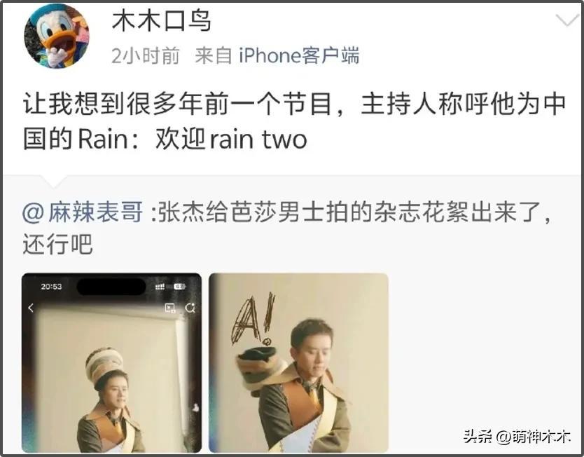 這位好友是薛之謙的關注人,不僅吐槽謝娜,還說張傑土,轉發張傑的雜誌照片,說他是“Rain two”(諧音閏土)。