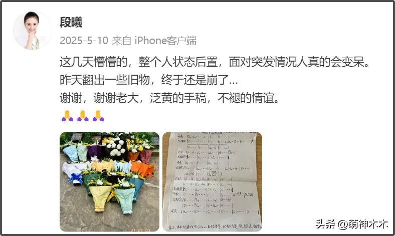 2019年的時候,段曦發文,似乎仍受到謠言影響,這幾年她的社媒幾乎處於停更狀態。只在2025年曬出過當年張傑《北斗星的愛》的手稿,似乎是在紀念已經去世的作曲人苟偉。