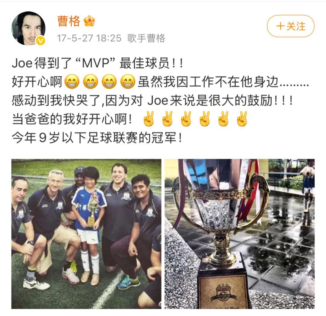 經常能從爸爸曹格和媽媽吳速玲的社交平臺上看到他的身影,