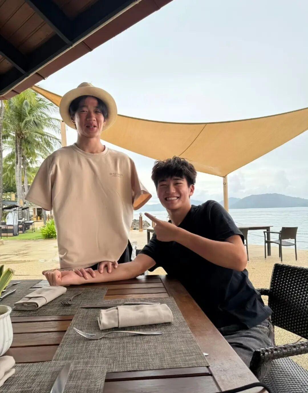 跟楊陽洋合照,爸爸也是毫無違和感地融入了