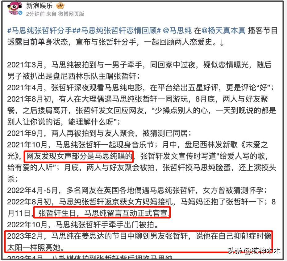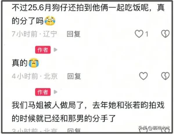 後來有粉絲爆料兩人已經分手了,在馬思純重新出來拍戲的時候,就已經和張哲軒分手了,被狗仔拍到一起喫飯是被做局了。