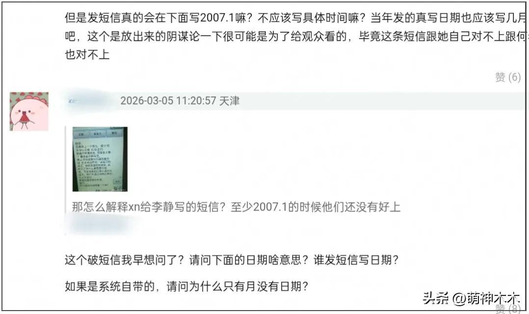 對比張傑後來又錄製李靜節目時的短信截然不同,當時攝影機對準了手機界面,上面有明確的系統日期和時間,而不是突兀的手打備註。