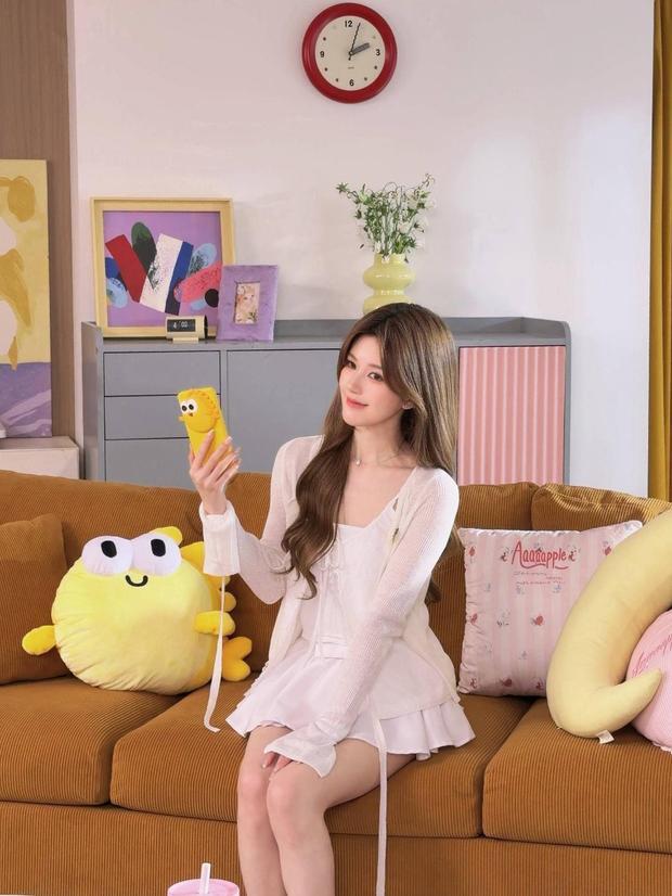 趙露思手持黃色卡通手機殼,側頭淺笑,溫柔甜美。