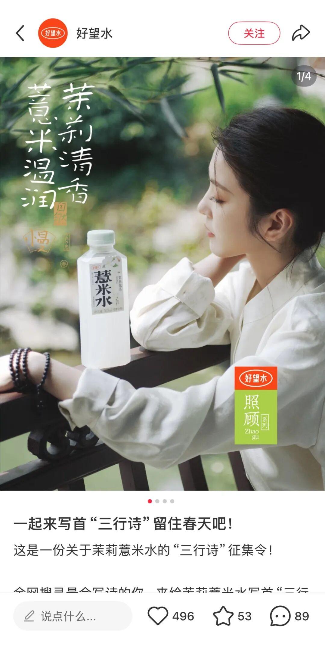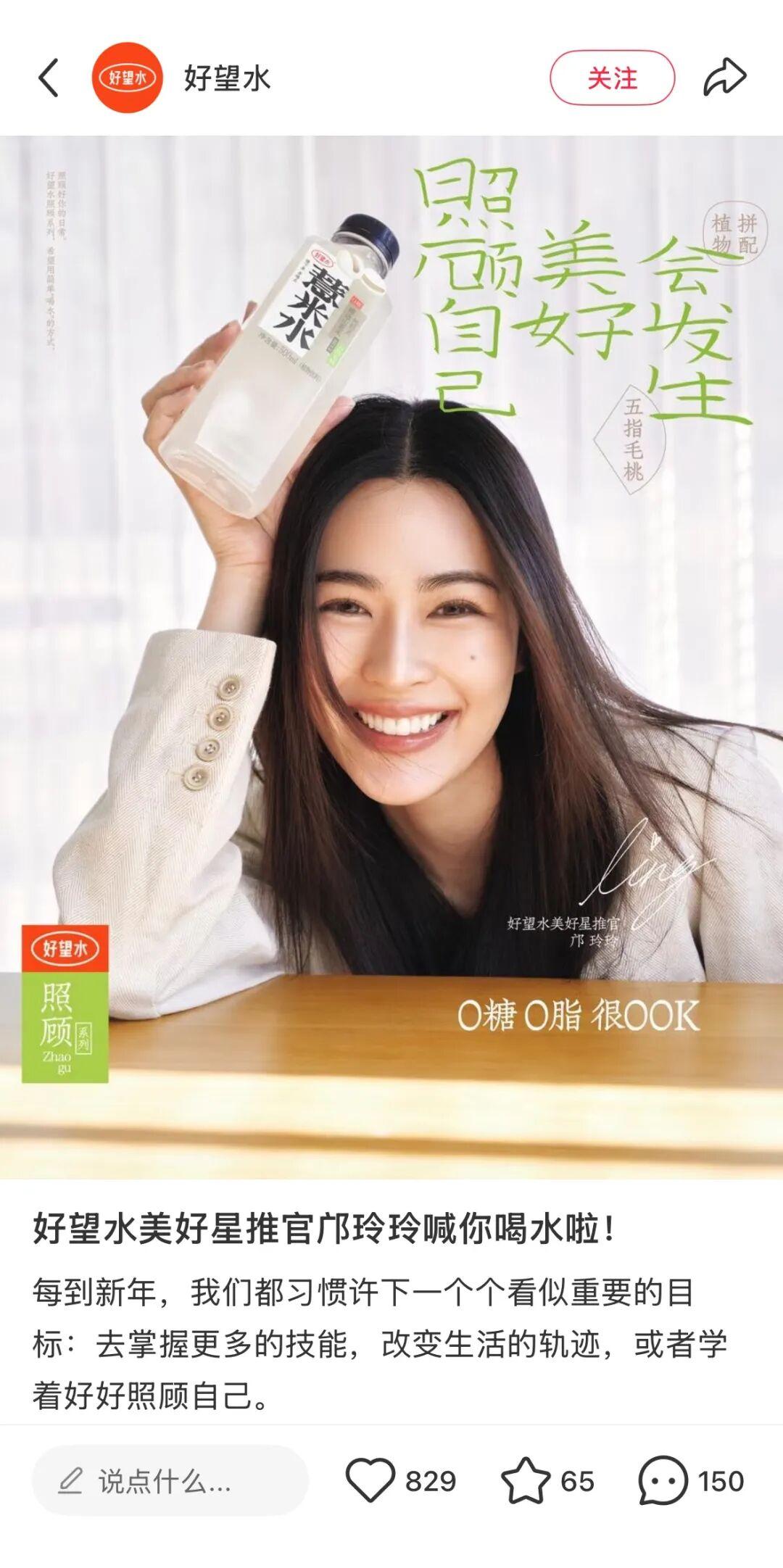 總結下來,即便是在目的性更強的種草營銷上,好望水也在致力於做出品牌氣質,用“好望水”的方式落地每一次合作,鄺玲玲的合作海報就被粉絲誇“審美拉滿”、“這麼會拍不要命啦”。