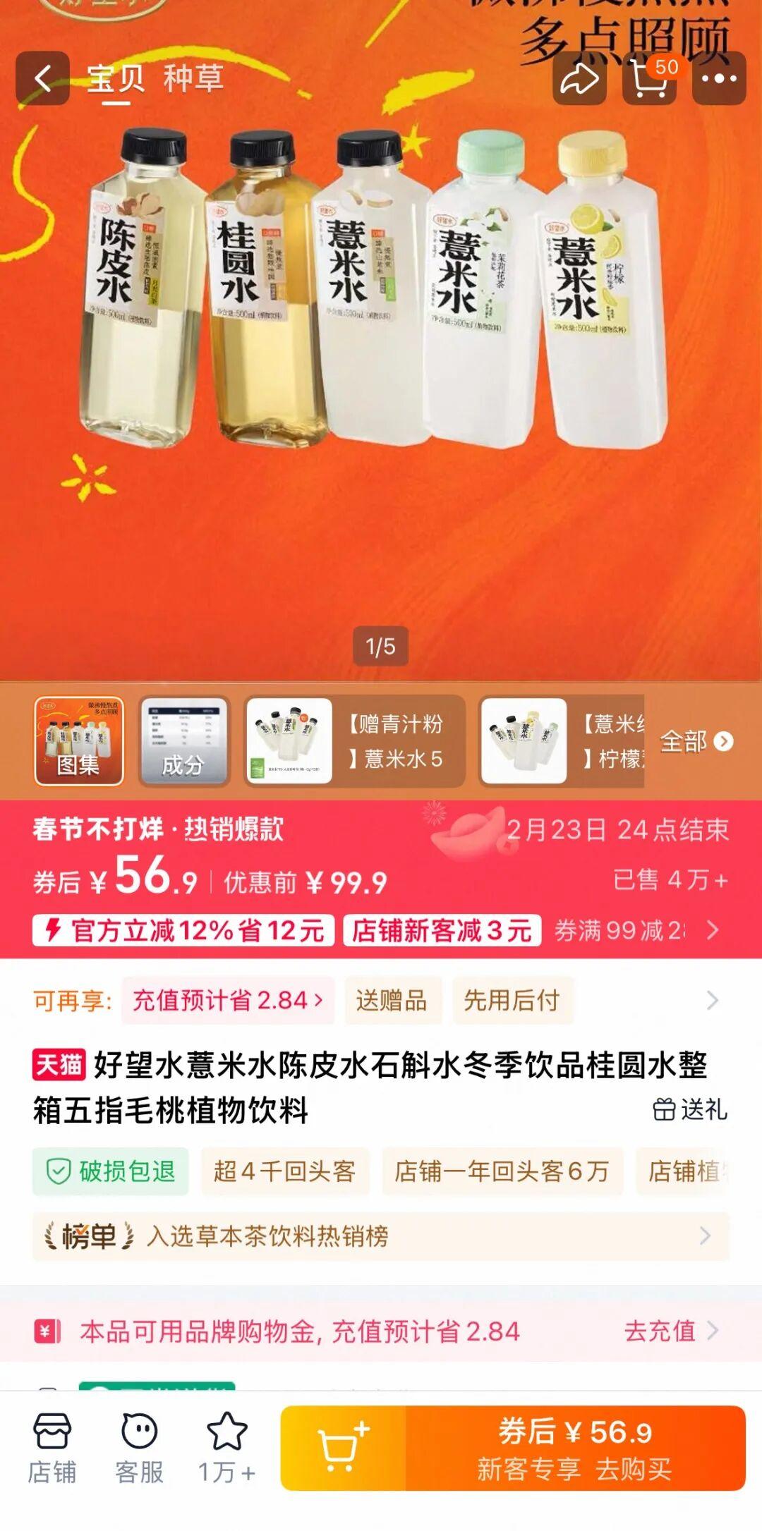 除了核心的“望”系列產品外,2024年好望水推出的“照顧”系列薏米水,快速打出聲量,2025年與“望”系列幾乎拉平銷售額。
