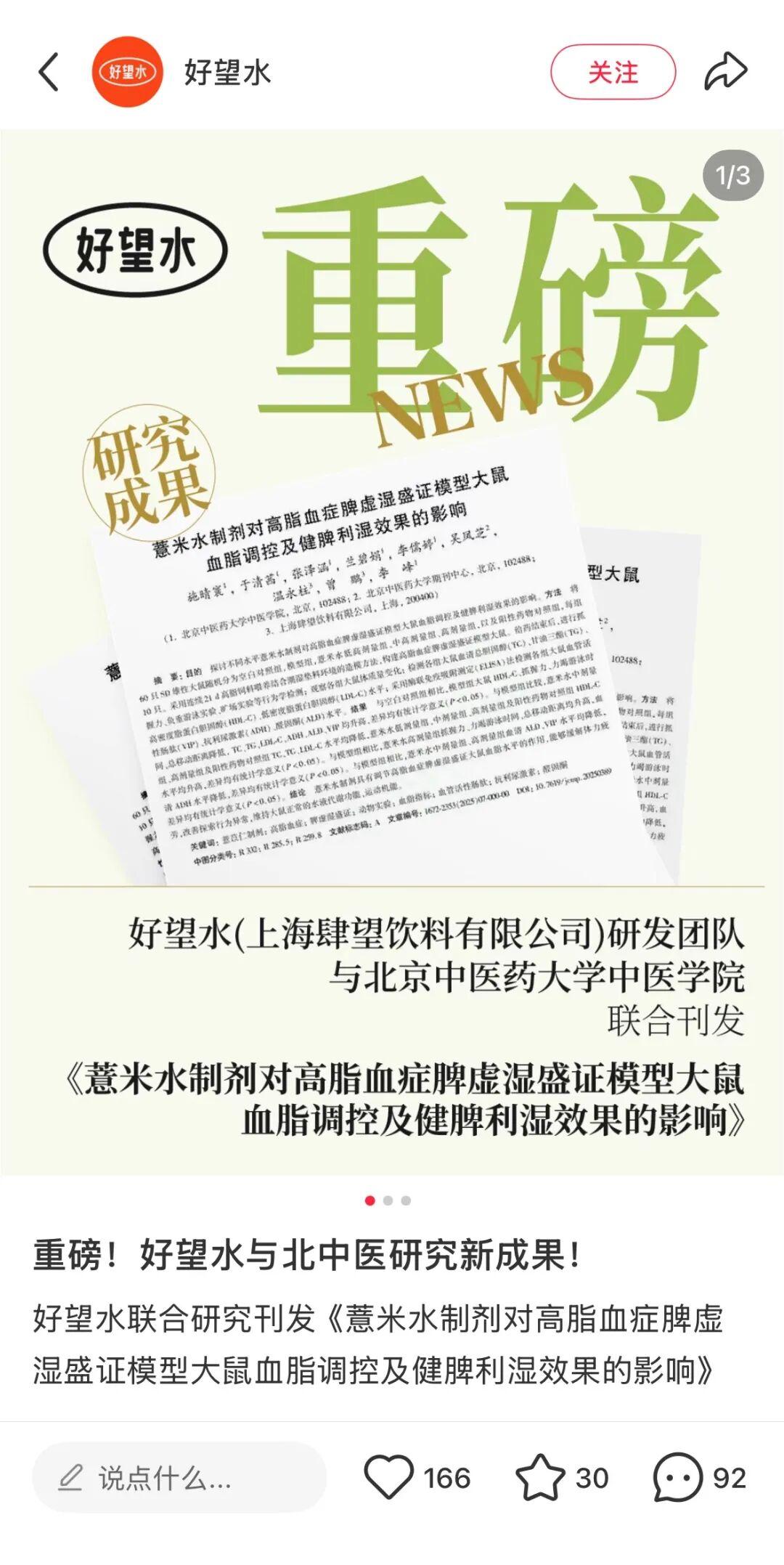 目前濃薏點在品牌內部屬於季節營銷款、暫沒有主力推。一是“我們想告訴大家,好望水在薏米這個原料上在不斷積累,因此需要更多新形態的產品”,此外,好望水也與北中醫聯合研究刊發了《薏米水製劑對高脂血症脾虛溼盛證模型大鼠血脂調控及健脾利溼效果的影響》;二是濃薏點的成本相對較高,導致線下渠道受限,目前主要在線上渠道銷售,“產品還沒有跑到一個最舒服的狀態的時候,我們不會太花錢。”