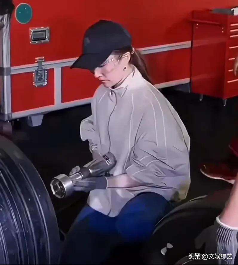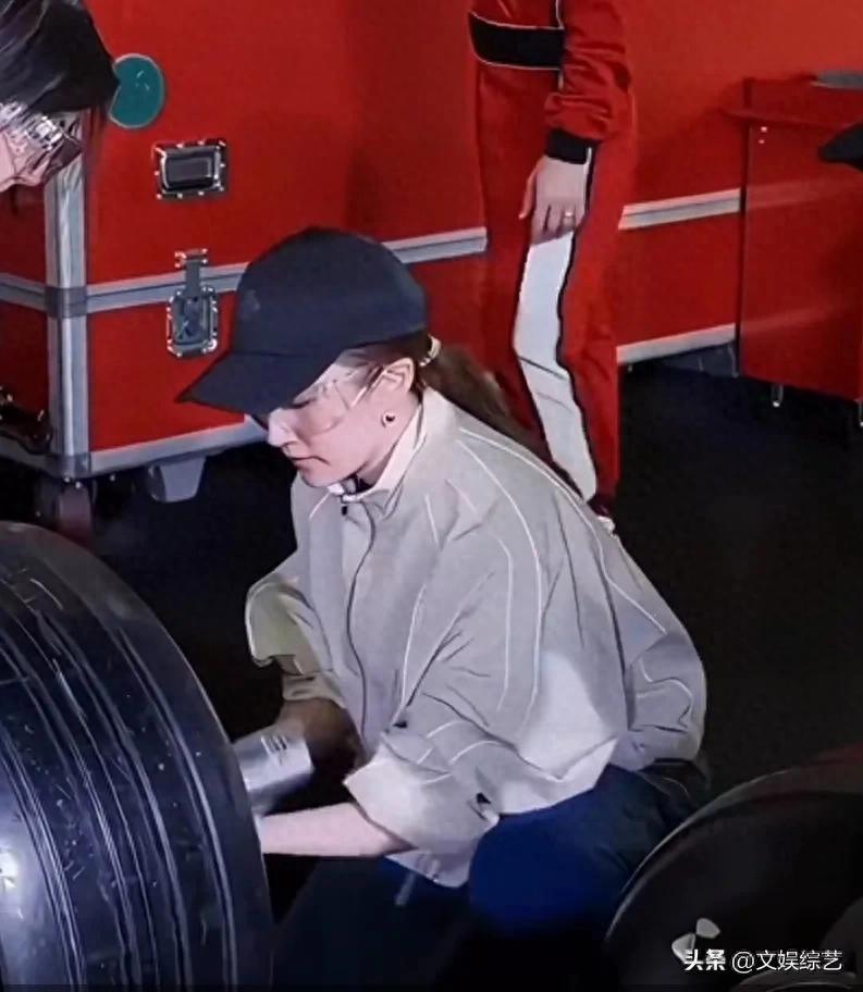 鏡頭裏的她,褪去了古裝劇裏飄逸的紗裙,一身黑色無袖短裙襯得身形利落,高馬尾在風中甩動,半跪在地時腰背挺得筆直,卸胎、定位、緊固,整套動作一氣呵成,8秒結束時,連現場的專業技師都忍不住吹起了口哨。