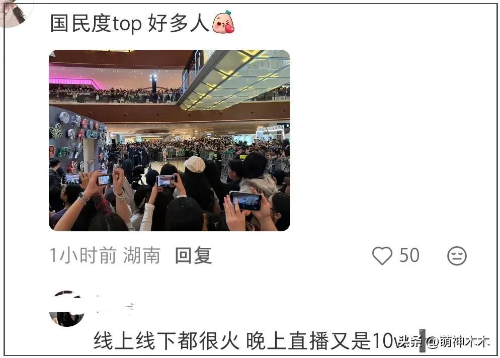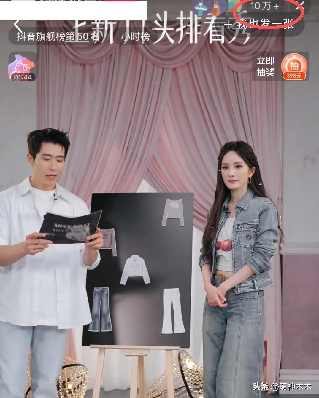 生圖被大篇幅嘲諷後,粉絲們開始拿人氣轉移視線,比如曬楊冪的活動線下圖以及直播間人數,從數據上來看,楊冪的人氣還處在高峯。線下商場人流圍了幾圈,線上觀看數據也有10萬+,作爲一個老牌流量,相當不錯。