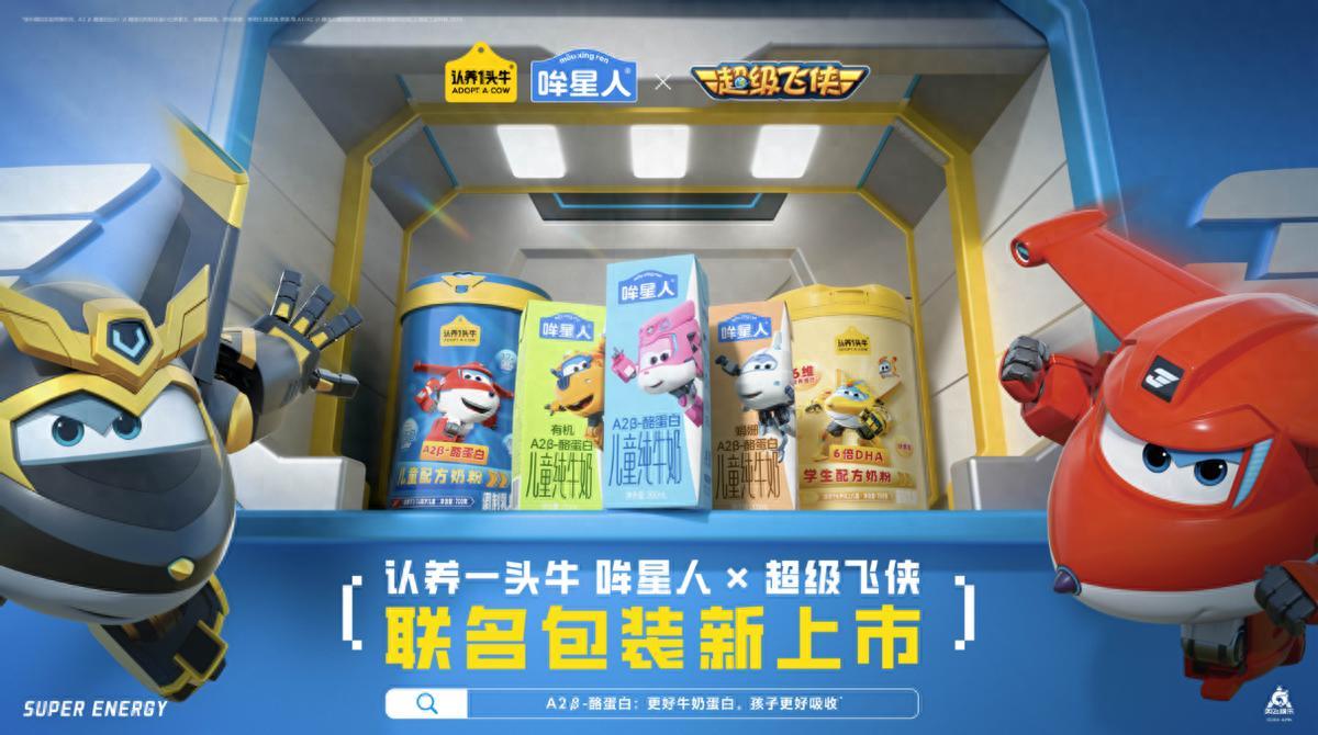 近日,認養一頭牛集團及其旗下專業兒童品牌“哞星人”宣佈與知名國產動畫IP“超級飛俠”達成合作,雙方聯合推出聯名款兒童純牛奶及兒童奶粉系列產品。據悉,這是“哞星人”品牌自2025年成立以來,首次開展IP聯名合作,標誌着其在兒童營養領域的佈局進一步升級,嘗試通過IP聯動拓寬品牌影響力。