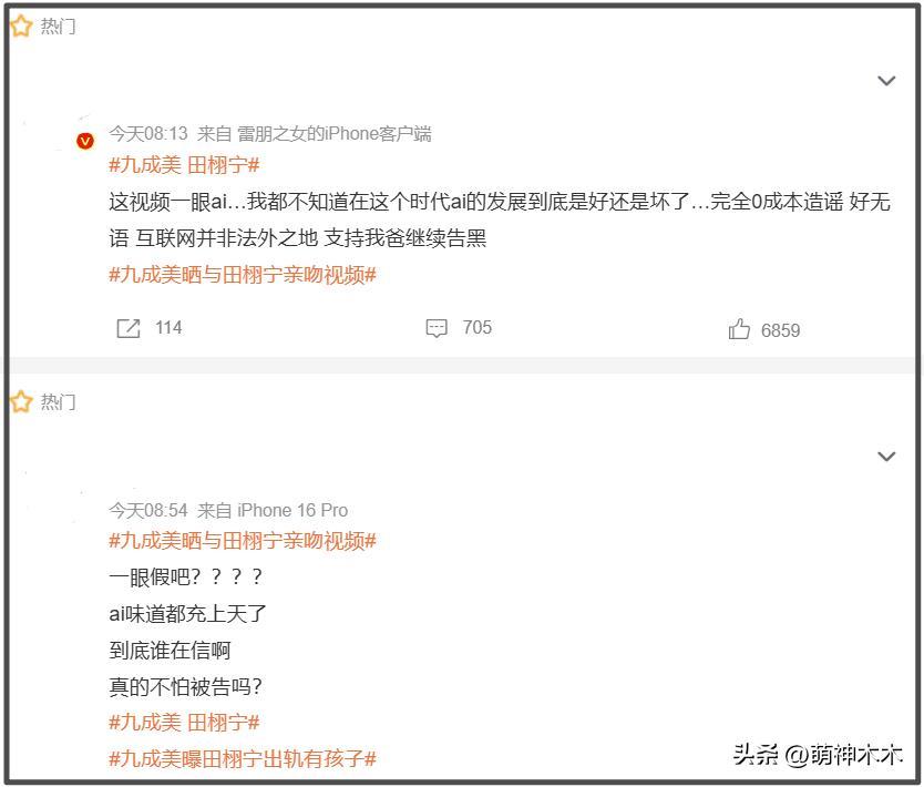 隨着九成美、田栩寧大量親密照曝光,越來越多網友站在了九成美這邊,紛紛在她的評論區表示支持,認爲九成美曝光的親密照真實度極高,一點都不像ai。
