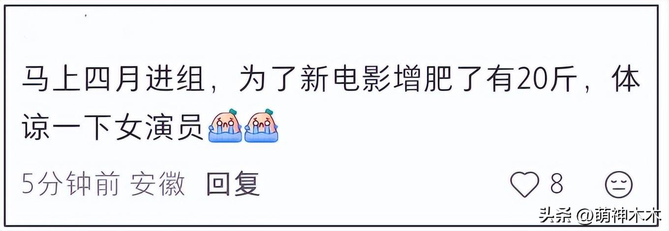 看到不少網友質疑章子怡的臉,粉絲解釋稱“馬上要進組了,爲了新電影增肥20斤,要體諒女演員”。對於章子怡到底是爲戲增肥還是真胖了,只要一天不官宣就沒法確認。