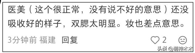 仔細看她的面部皮膚狀態,有網友質疑醫美過度弄得個人特色全沒了,比如顴骨填太多浮腫,法令紋也如此,紋路減淡後顯胖,雙腮看着也都還沒吸收好。