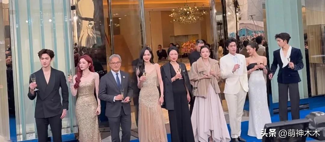 看現場,明星的站位還是挺講究,剪影和合影的人數一共是9人,章子怡大多時候都是站在左排第四,離C近,但剪了兩次,與鍾楚曦同框的那次站在左排第三,位置不如唐嫣。