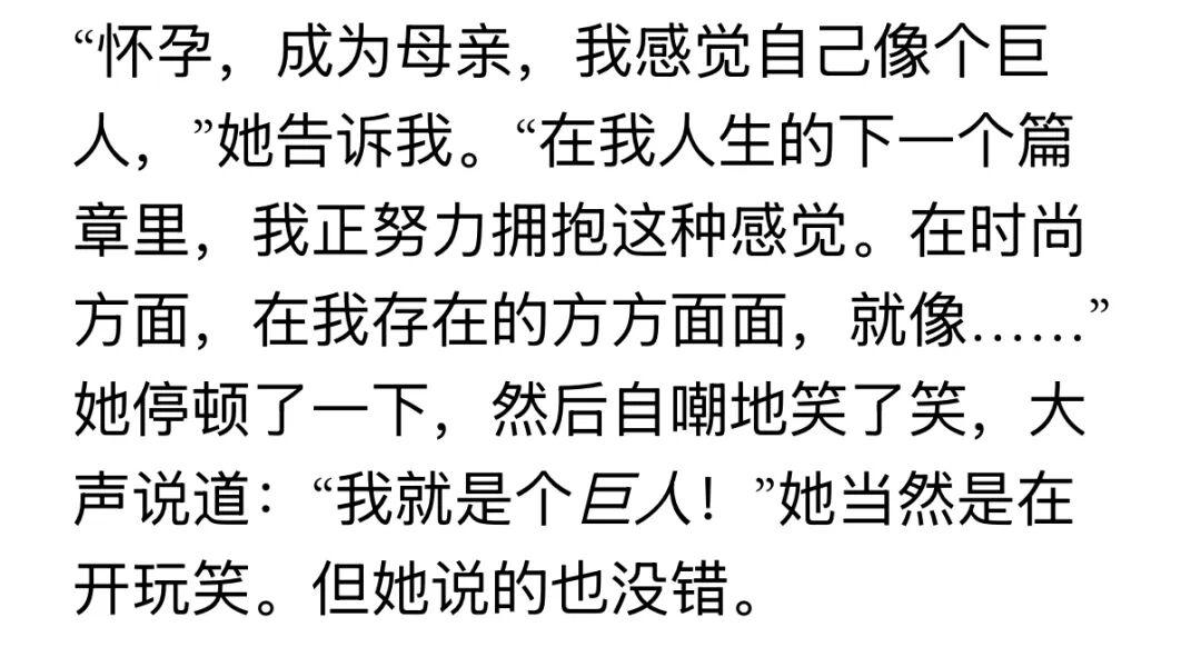 她還說成爲母親也讓她的人生走進了下一個篇章