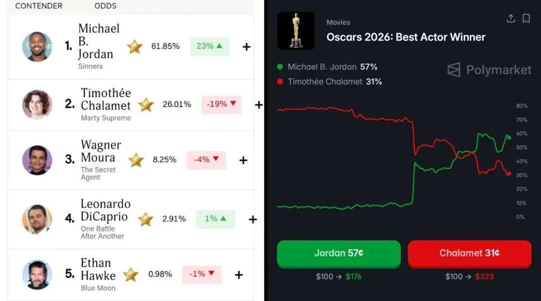 拿到影帝的是在《罪人》裏一人分飾兩角的邁克爾·B·喬丹
