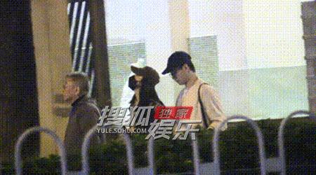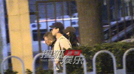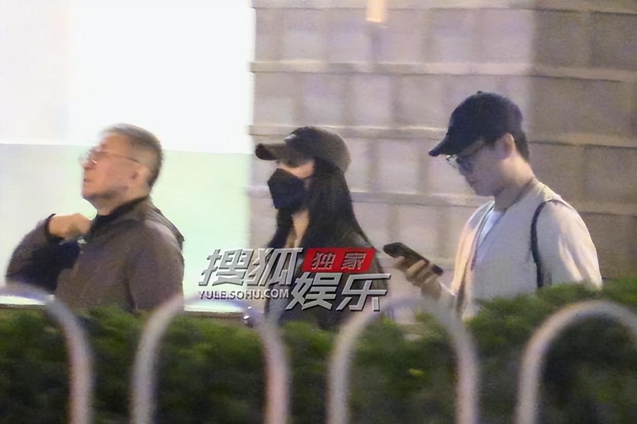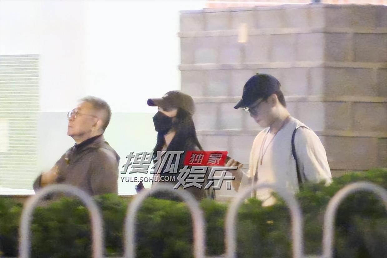 飯後,姚晨和一位年輕男士並肩而出,同行的還有一位長者。