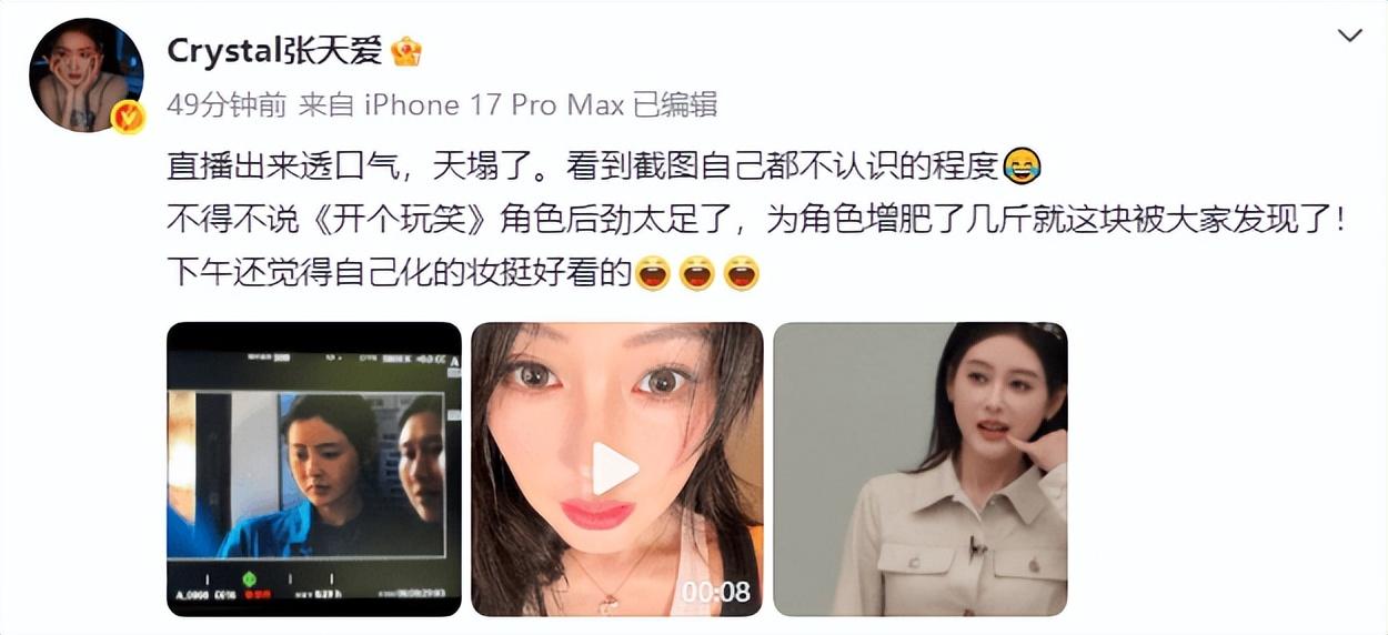 搜狐娛樂訊 2日,在《乘風2026》直播中,有網友發現張天愛長相變樣了引發熱議。當晚,張天愛曬照併發文回應稱自己是因爲角色需要增肥,導致容貌有些變化,還調侃“看到截圖自己都不認識的程度”。