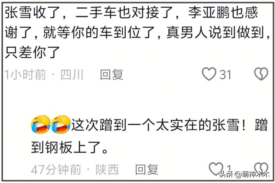 另一邊,張雪和李亞鵬倒是你一個直播我一個視頻,不管陳光標豪車捐贈到位不到位,張雪反正要把比賽車輛的復刻版拍賣所得款項都捐給嫣然基金。