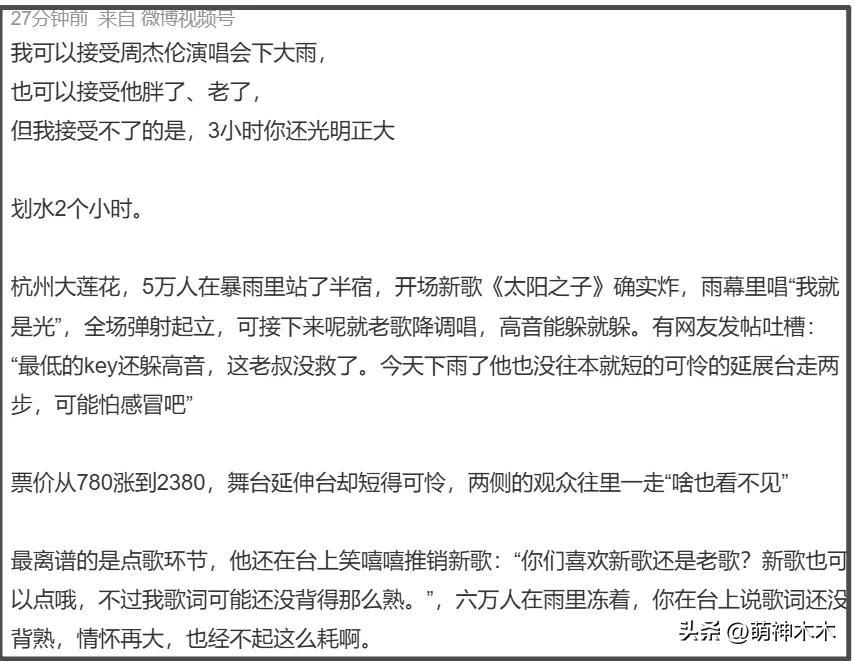 當然了,如果僅僅是身體機能下降,網友也許還會心疼周杰倫,然而周杰倫演唱會的槽點遠不止周杰倫本人。