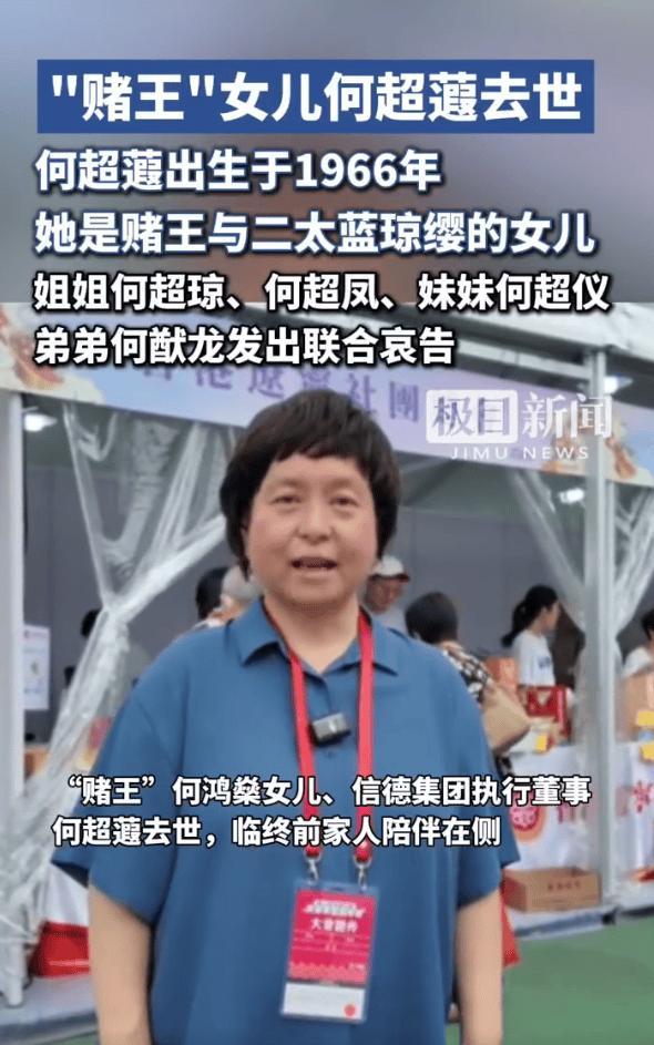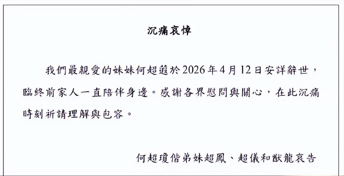 4月12日,何超瓊、何超鳳、何超儀、何超龍發佈公開訃告,宣告姊妹何超蕸於4月12日在香港去世。