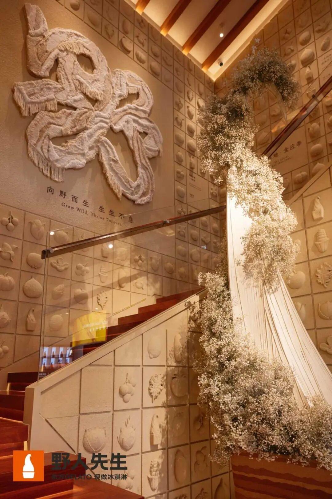 按照野人先生的設想,這家門店內還添加了更多木石綠植等具有天然性質的元素。這家門店佔地五百多平米,是一座雙層獨棟建築,櫥窗長滿藤蔓和南瓜,花朵像瀑布一樣從二樓垂落下來。