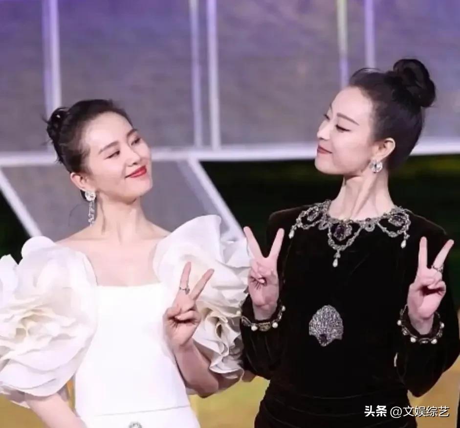 在戲裏面,蔣南孫與朱鎖鎖彼此相互扶持,而在戲外面,這兩個人更是關係好到了極致,相互爲對方的電影包場,以此來表示支持,在紅毯之上,她們牽手,對視,還咬耳朵。