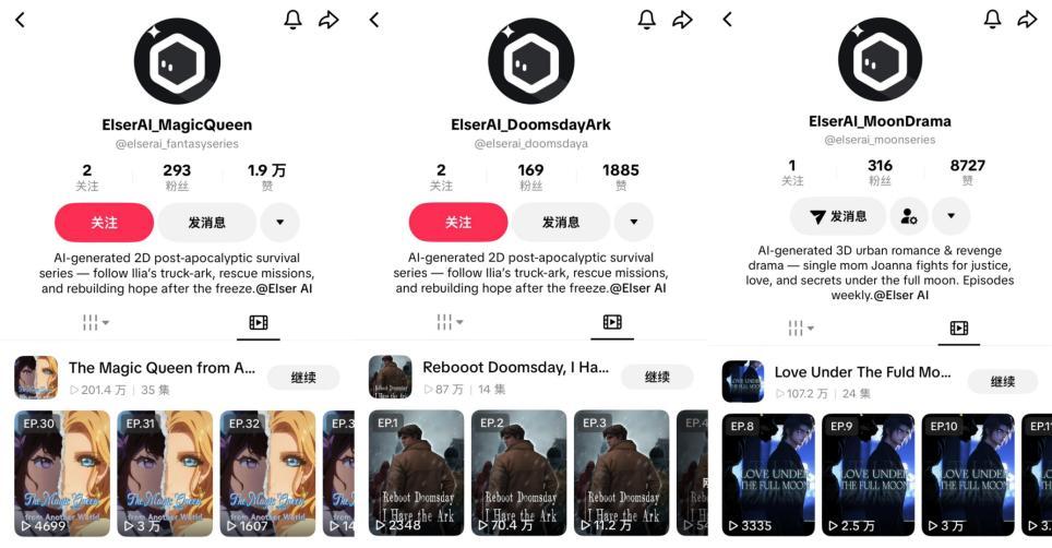 去年下半年開始,TikTok上開始湧現數十個AI短劇賬號,上線Series專欄,穩定產出AI擬真人短劇與AI漫劇,現在多個賬號粉絲已破百萬。