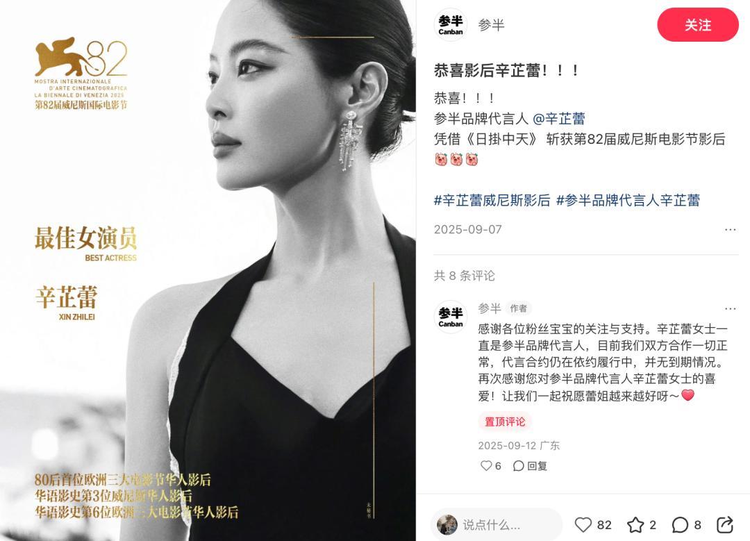 藉助辛芷蕾的影視、時尚與國際資源,參半電影、時尚、國際獎項資源,爲參半進入大衆視野,更廣的線下渠道提供了權威背書。從其斬獲威尼斯影后,到參演電影《日掛中天》《刺殺小說家 2》首映禮,參半都快速進行了全程跟進。